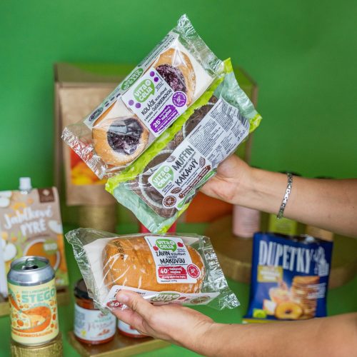 Muffin bezgluténový kakaový – bezlepkový muffin z treného kakaového cesta, Závin bezgluténový s náplňou makovou – bezlepkový závin z kysnutého cesta s makovou náplňou a Koláče bezgluténové s náplňou čučoriedkovou – bezlepkové koláčiky z kysnutého cesta s čučoriedkovou náplňou a sladkým posypom.