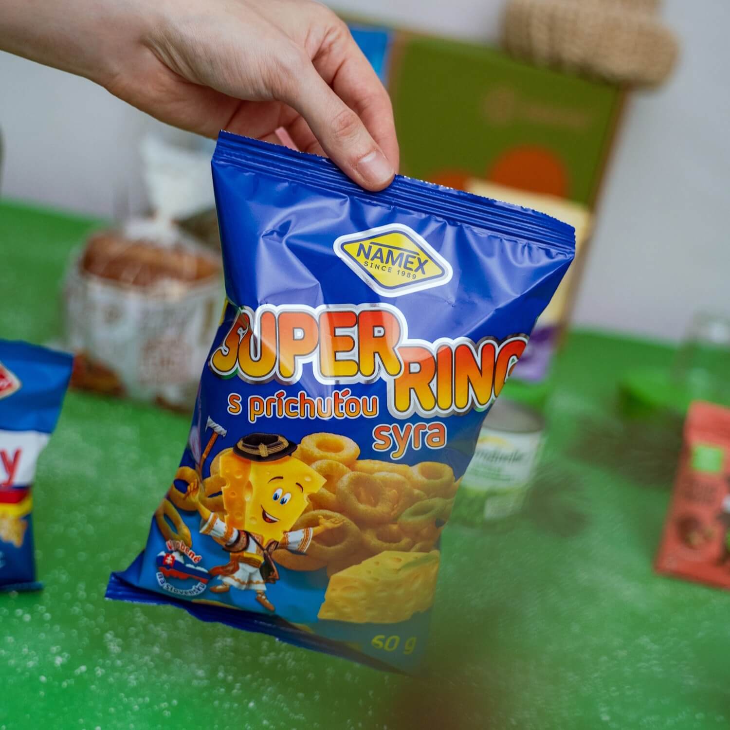Super Ring patrí medzi ikonické produkty značky NAMEX. Kukuričné krúžky so sýtou syrovou arómou prinášajú tradičnú, osvedčenú chuť, ktorá zostáva obľúbená naprieč generáciami.