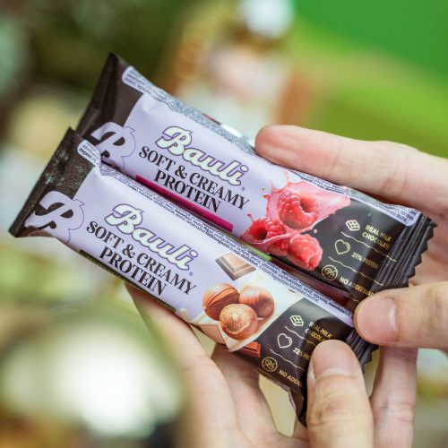 Soft & Creamy Protein sú najnovším prírastkom do rodiny Bauli, určené pre tých, ktorí nechcú robiť kompromisy medzi chuťou a zdravím. Každá tyčinka je obalená bohatou vrstvou krémovej mliečnej čokolády a skladá sa z dvoch častí dokonalého pôžitku — hladkého, proteínového základu a luxusnej, krémovej náplne. Či už hľadáte rýchlu desiatu alebo chcete uspokojiť svoju chuť na sladké, Soft& Creamy Protein vám prinášajú ideálnu kombináciu chuti a výživy. Bez pridaného cukru a s pestrou paletou neodolateľných príchutí sú tieto tyčinky ideálnou voľbou pre všetkých, ktorí chcú prémiový, ale bezvýčitkový pôžitok. Či už túžite po klasickej kombinácii lieskového orecha a čokolády, sladkej sviežosti maliny, bohatej chuti karamelu alebo jemnej lahodnosti kokosu a mandlí, máme príchuť pre každého.