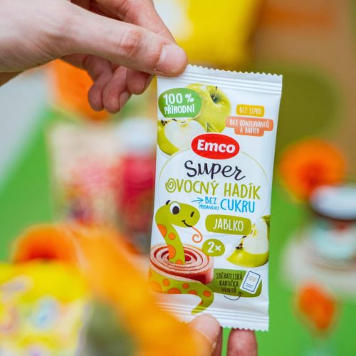 Super hadíkovia od Emca sú skvelou desiatou nielen pre deti. Ideálne do školy pre každého maškrtníka. Vnútri balenia sú 2 ovocné pásiky stočené do roliek – hadíkov. Hadíky neobsahujú žiadny pridaný cukor a sladkí sú len vďaka ovociu. Hravo a zdravo nahradia cukríky či iné sladkosti. Sú plní ovocia, neobsahujú žiadne konzervanty ani farbivá. Súčasťou každého balenia je zberateľská kartička s pútavými kresbami zvieratiek a zaujímavostí o nich. Na zadnej strane kartičky je zábavná aktivita pre deti.