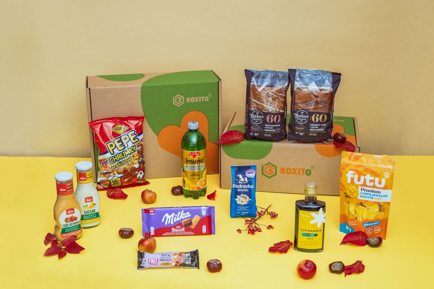 V boxe sa opäť vracajú kváskové záviny – makový a orechový, ktoré si získali vaše srdcia (a chuťové poháriky) už minule. K tomu proteínová tyčinka pre energiu na sychravé dni a niečo na varenie a ochucovanie jedál, čo dodá vašim domácim receptom nový rozmer.